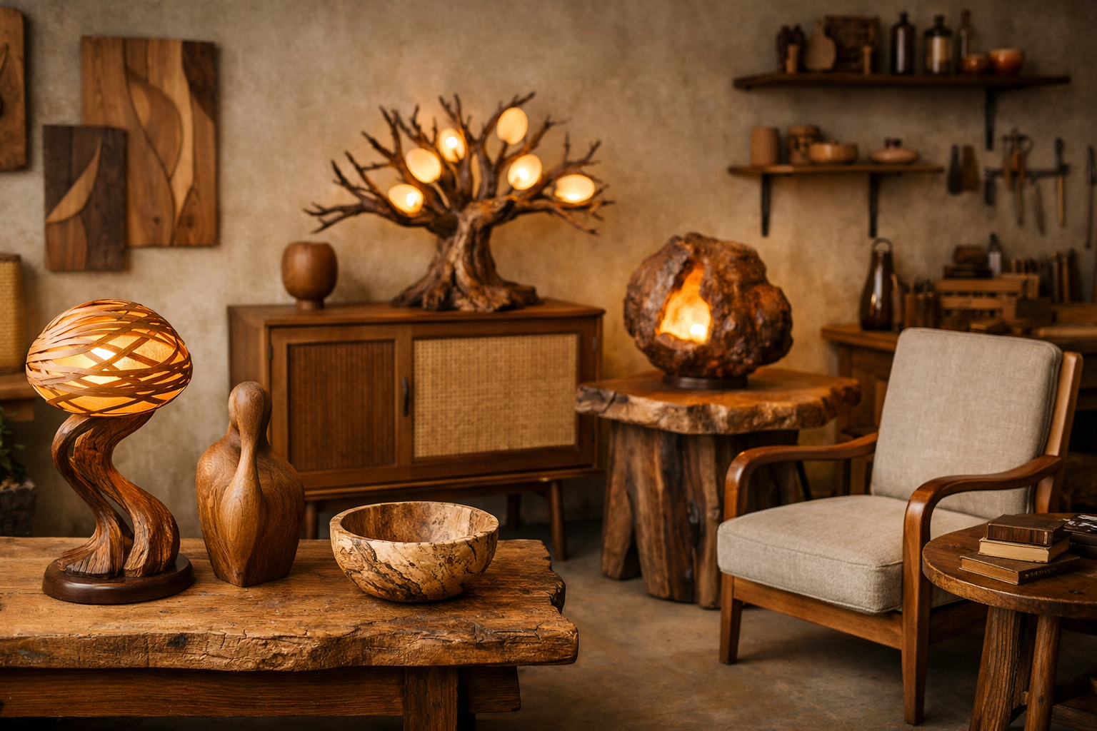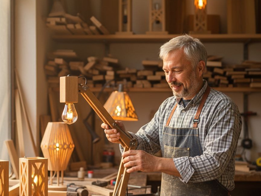 - авторские светильники, где главный герой - тёплое дерево и мягкий свет.